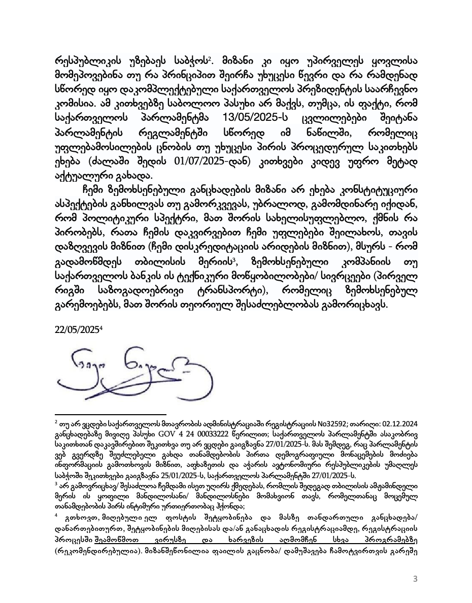 კორესპონდენციის საქართველოს პარლამენტიდან მიღებას, სადაც მოცემული იყო 97